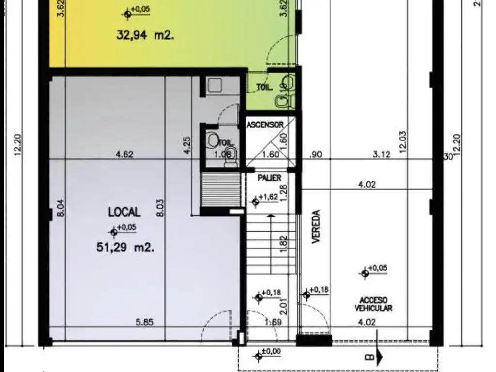 Cuenta con sector de local con un frente de 5,85mts con un baño y cortina de enrollar y sector de oficina con un baño, en total son 84m2 cubiertos.