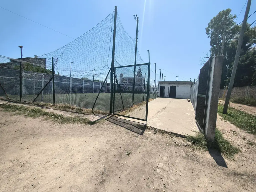 El predio cuenta con dos baños, vestuarios y áreas semicubiertas con una superficie construida de más de 170 m2, que puede destinarse a oficinas, cocina, patio y otros ambientes funcionales. Además, ofrece servicios esenciales como agua corriente, electricidad, alumbrado público y pavimento, lo que lo convierte en un lugar cómodo y accesible para eventos recreativos, encuentros familiares o actividades institucionales.