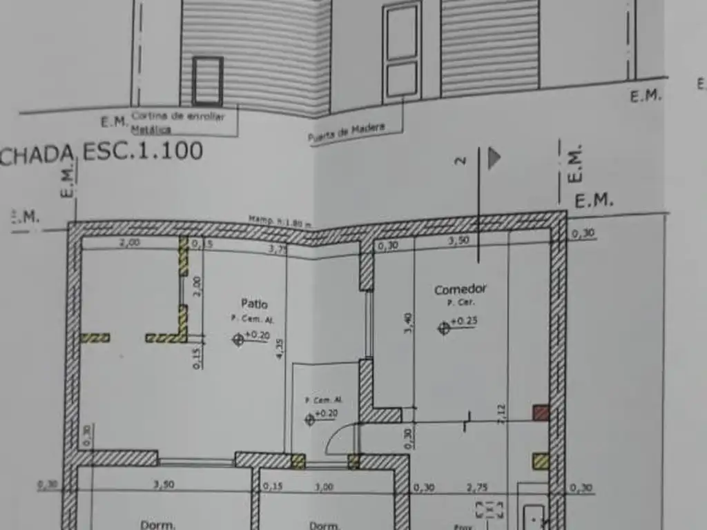 Dos locales comerciales al frente con cortina metálica ciega, baños, piso cerámico, techo de losa.