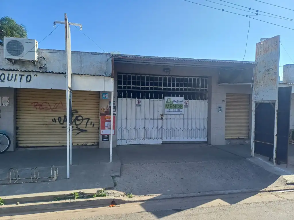 Cuenta con dos locales comerciales al frente y un galpón cubierto de aproximadamente 200 m2.