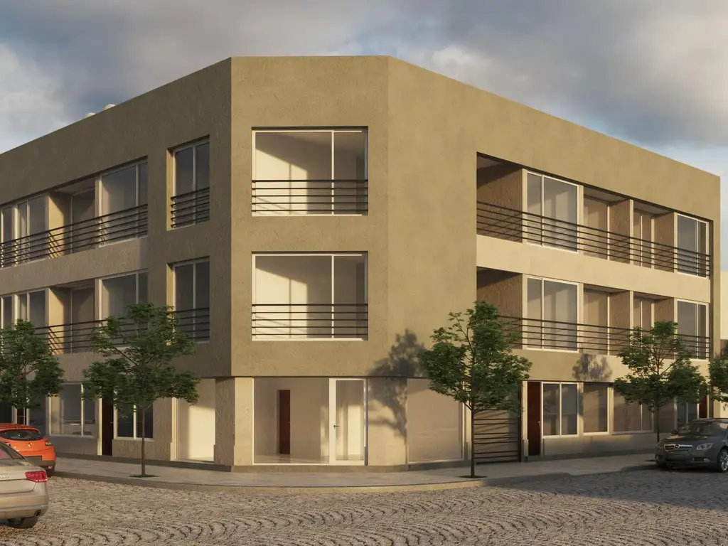 La obra consta de departamentos de 1 y 2 ambientes con/sin patio, realizada con materiales de primera calidad: piso zócalo cerámico, pared con grueso enduido pintado, techo cielorraso placa y yeso.