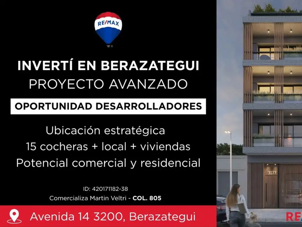 Es un momento ideal para desarrolladores o inversores que buscan un proyecto sólido y con buena proyección de crecimiento en Berazategui. No dejes pasar esta oportunidad de inversión, contactanos para más detalles y coordina tu visita.