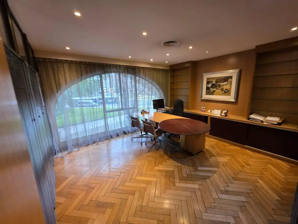 OFICINA RESUELTA: Palier privado compartido, recepción, 3 Despachos, Privado Gerencial. Gran Sala de reunión, Secretaría, 2 baños, Office. Calefacción / Refrigeración con Equipo Propio. Ventanales DVH, ambiente muy silencioso y luminoso. Sala de Racks. Tendido de Redes. Cuenta con1 cochera fijaen el edificio.
