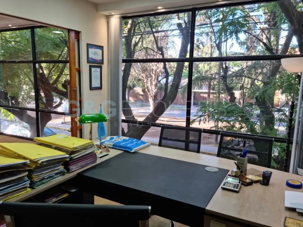 Oficina en PB y 1er Piso, totalmente equipada y vidriada, compuesta por 2 oficinas privadas, una recepción, sala de reunión para 8 personas con zona coffe. Alarma y Cámaras.