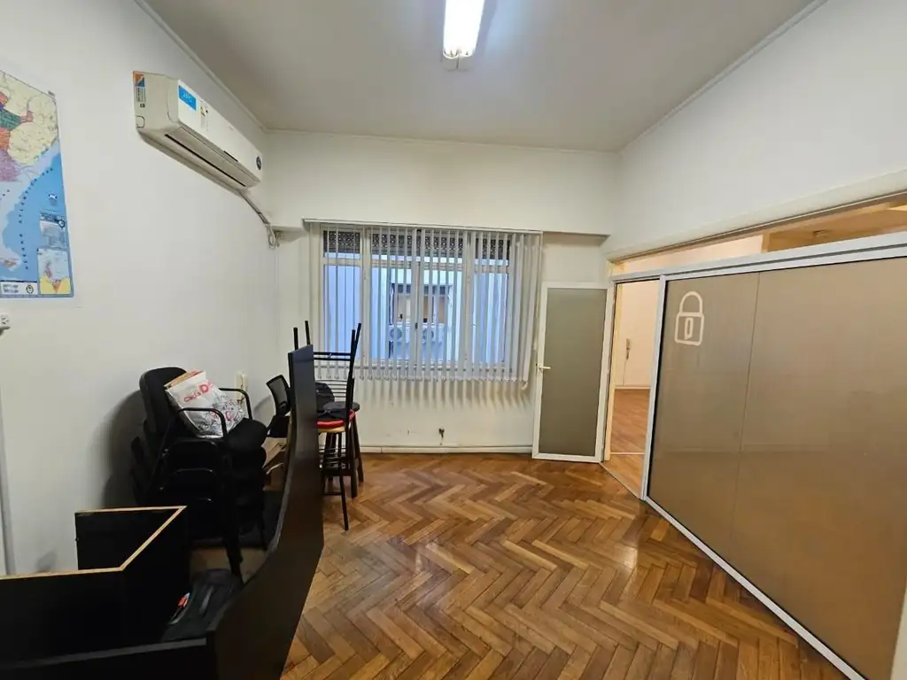 Excelente oficina en alquiler de 60 m2 al contrafrente, muy silenciosa y luminosa, en buen estado, con baño y cocina. Piso de parquet y flotante en muy buen estado. Luminarias, lista para mudarse. HORARIO del Edificio: Las 24 Horas!