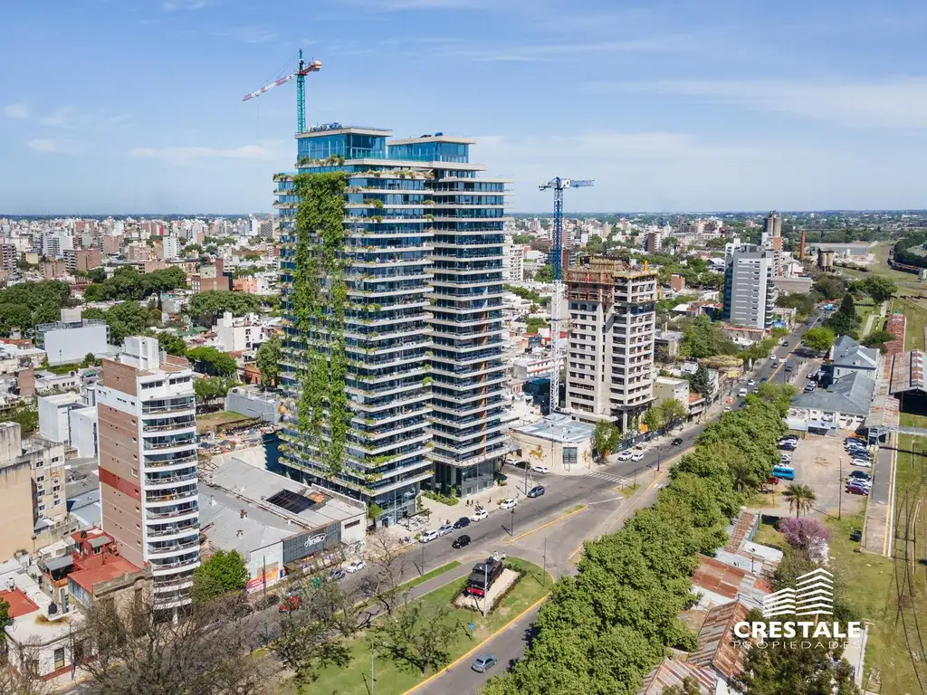 Oficinas en primer y segundo piso con ingreso independiente por escaleras. Piso exclusivo con ventanales al Norte sobre Av. Rivadavia. Espacios amplios, luminosos y modernos; Planta baja en triple altura con propuesta comercial y gastronómica; Paseo arbolado con calles vehiculares y peatonales; Amplios espacios verdes para la ciudad.