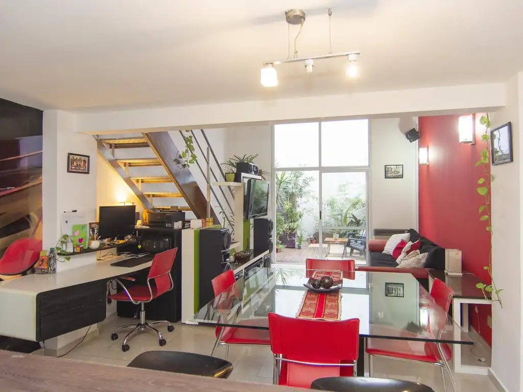 En nivel inferior, cocina integrada con espacio para lavarropas, espacio de living, espacio de comedor, con mucha luz natural, y patio.
