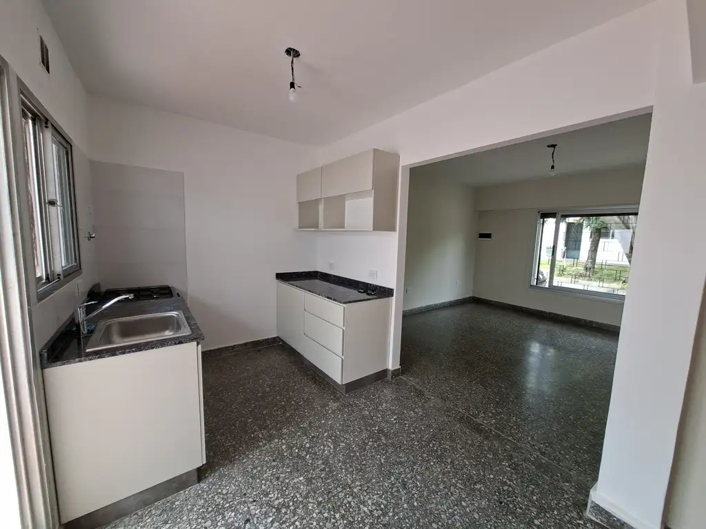 Totalmente reciclado a nuevo. Cuenta con amplio living comedor, cocina semi integrada con bajo mesada y alacenas, baño completo con ducha, dos dormitorios con placares y pisos de parquet. Patio con conexion para lavarropas. Super luminoso. Todas las instalaciones de gas, agua y electricidad a nuevo. Lista para entrar ya.