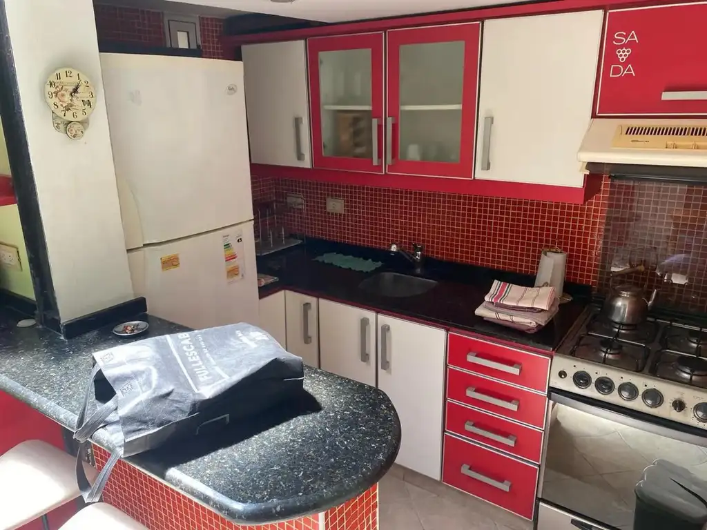 Cocina integrada con heladera con freezer y microondas. Lavarropas. Baño completo con ducha. Amplios placares. El segundo dormitorio está utilizado actualmente como sala de estar.