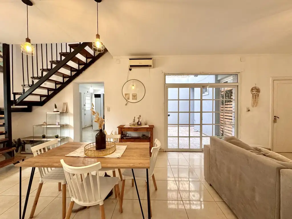 La propiedad fue renovada integralmente en 2015 y se organiza en dos niveles. En planta baja se accede a un amplio y muy luminoso estarcomedor, vinculado a una cocina práctica con sector de lavadero separado, un baño completo y un patio seco que conecta con el pasillo de salida hacia calle Olive.