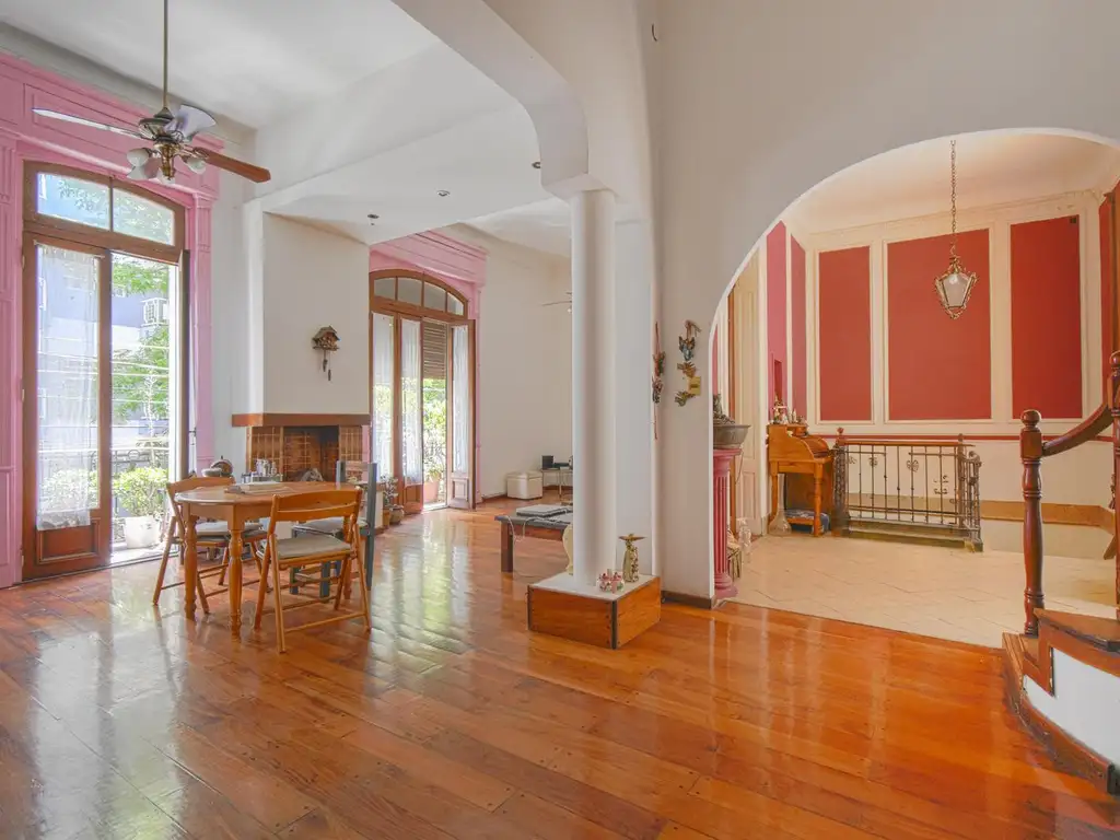 Lleno de luz y con gran amplitud. Detalles clásicos, como vidros vitro y puertas de madera. En planta baja cuenta con un living comedor muy amplio con balcón corrido, un baño completo y una amplia cocina independiente, con un espacio de estar. Desde la cocina se accede por una escalera a un monoambiente independiente, totalmente equipado (baño completo, kitchenette, placard, escritorio), ideal para renta temporaria o huéspedes, Ubicado en el 1er piso que da al patio común.