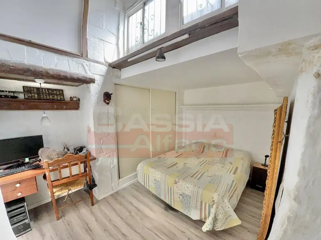 PLANTA BAJA muy bien distribuida con Amplio Living/comedor, estilo mediterráneo, Cocina independiente con Bajo mesada, amplio ventanal que le permite un muy buen ingreso aire/luz, termotanque independiente, bacha y espacio para heladera. Hall distribuidor de estilo, con hogar, Un amplio dormitorio principal con placard y ventanal super luminoso. Un baño integramente reciclado paredes en microcemento, espacios compartimentados con vanitory y bañera, griferias de primera. Un dormitorio pequeño con division tipo escritorio. Acceso a la PLANTA ALTA por escaleras, detalles de barandas de hierro forjado que brindan un ambiente único y original con pisos porcelanato en desnivel "a nuevo", super luminoso y ventilado que puede utilizarse como un tercer dormitorio, escritorio, play room o sala de lectura/biblioteca, etc.
