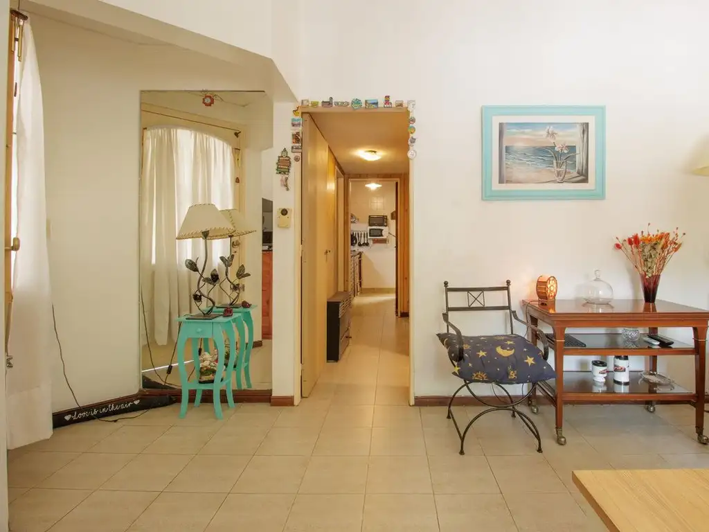 Al ingresar, nos encontramos con un luminoso living con ventana al frente, que aporta luz natural y genera un ambiente cálido y luminoso. A través de un pasillo distribuidor accedemos a un baño completo y a los dos dormitorios:
