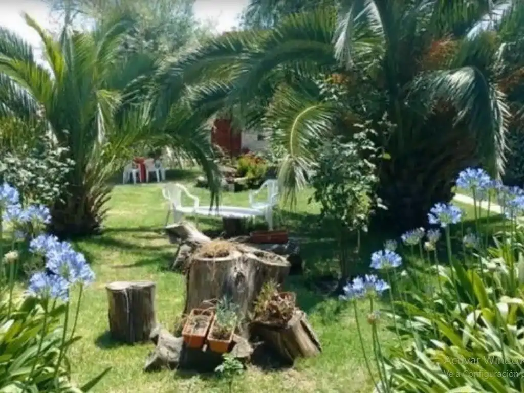 Unidad 1.- Un ambiente amplio preparado para 5 personas con cama matrimonial, camas individuales, heladera, cocina y horno electrico, television, parque con mesa y sillas, parrilla y parque propio