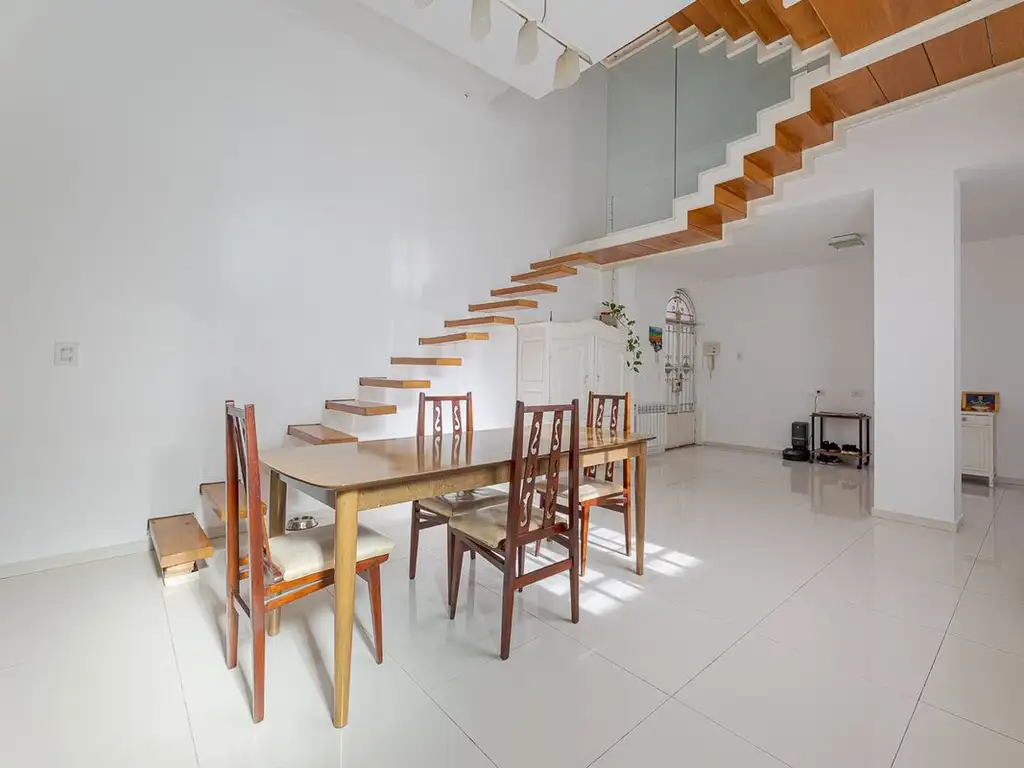 Dpto de pasillo de 3 dormitorios, desarrollado en 2 plantas, con patio y terraza.
