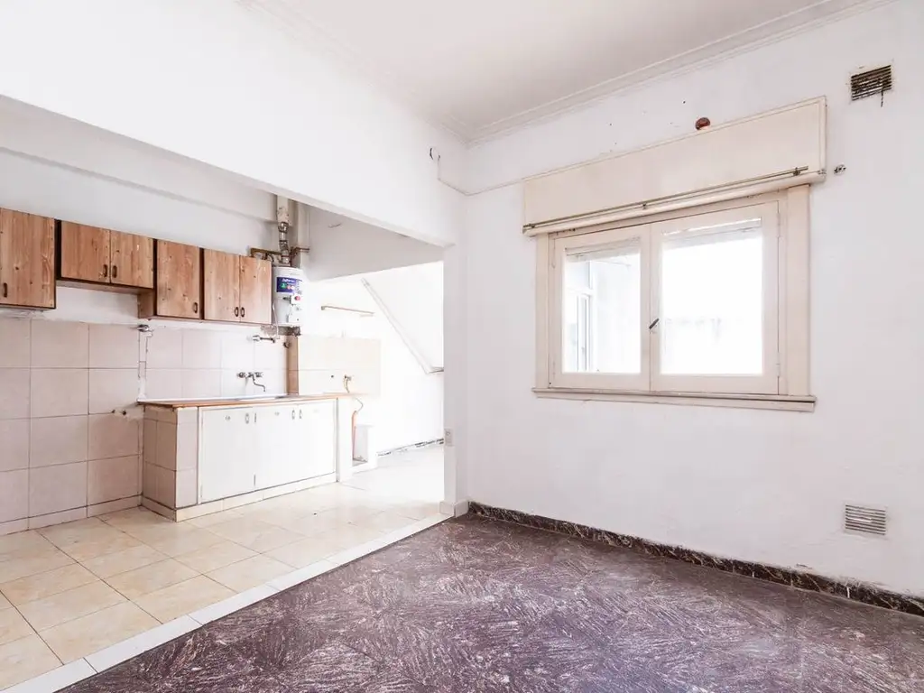 Departamento amplio, luminoso y con buena ventilación. Solo un vecino a través del hall y dos locales en planta baja. Patio de uso común en planta baja. Gran potencial en la terraza con vista hacia el parque. SIN EXPENSAS!