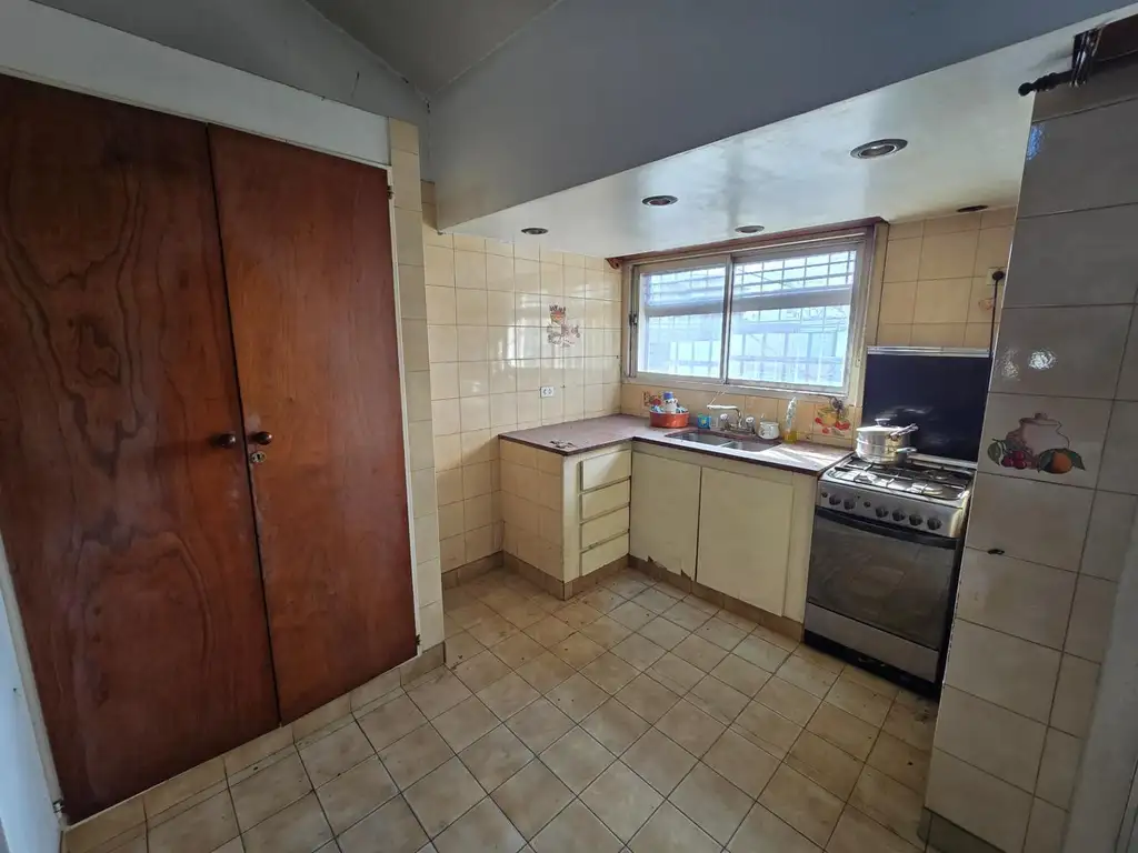 En planta baja, la propiedad ofrece un gran espacio actualmente utilizado como garage, de generosas dimensiones (3,17 x 13 m aprox.), con baño y cocina a reciclar, ideal para transformar en un local comercial, estudio profesional o incluso una segunda unidad funcional. Además, cuenta con un amplio pulmón de manzana libre al fondo, que brinda ventilación, luz natural y múltiples posibilidades de expansión.