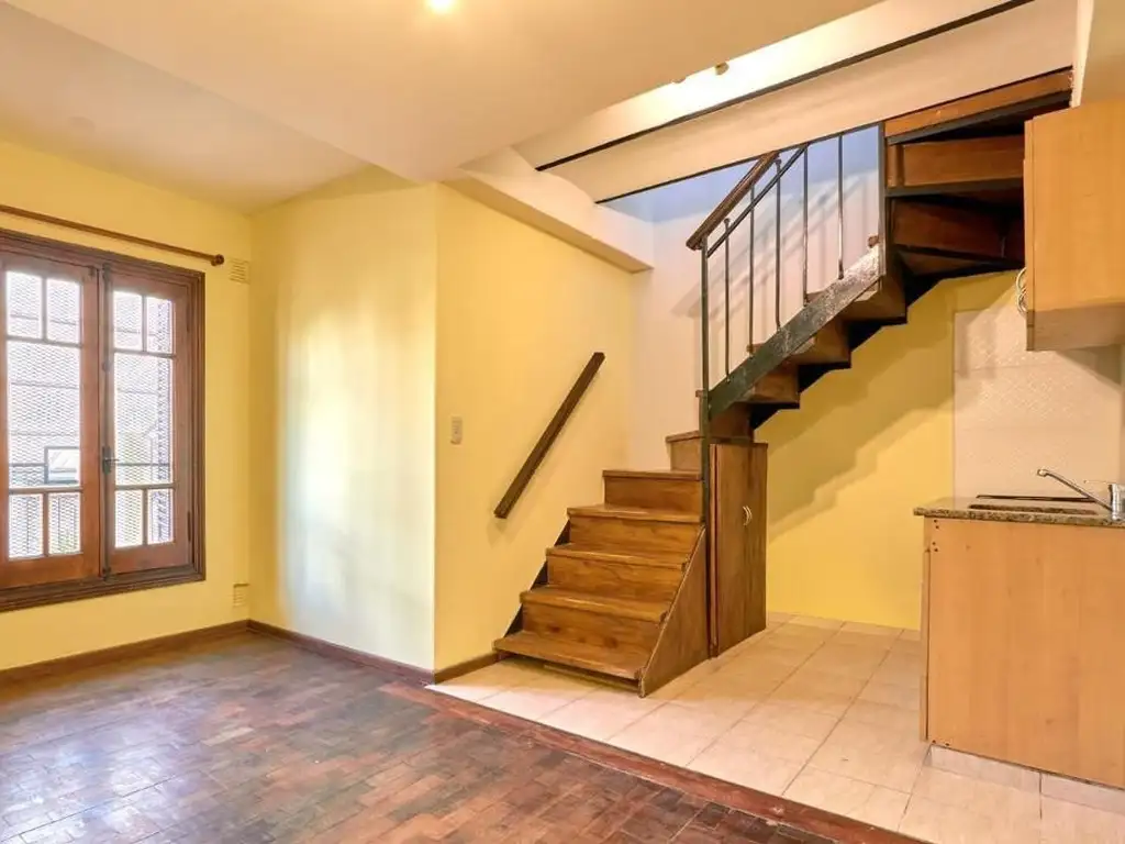 Descripción: dúplex de dos dormitorios en excelente estado de conservación. Encierra una superficie de 52 metros cuadrados, orientado al este, en un primer piso por escalera.