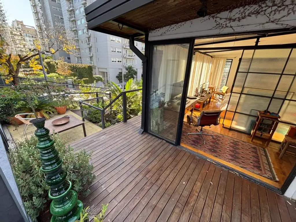 Espectacular P.H. en lo mejor de Palermo Hollywood. Ingresamos por un pasillo, y la unidad se encuentra al fondo del mismo. Es la ultima unidad de un edificio de 3 unidades. En planta baja nos encontramos con el living (muy luminoso), cocina comedor, dormitorio y baño completo. En la planta alta se encuentra la habitación principal de grandes dimensiones, con vestidor, office y baño completo. Desde la planta alta tambien podemos acceder a la terraza con un deck que mira al pulmón con vista muy agradable.
