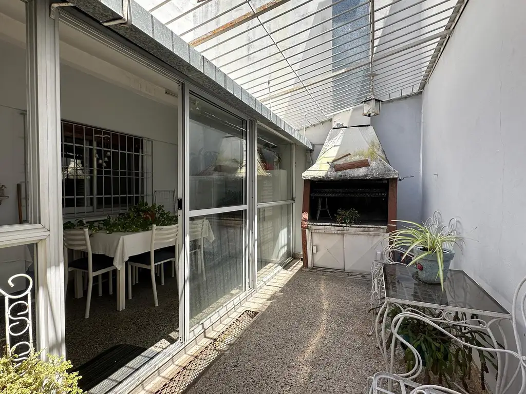 Cómodo y luminoso inmueble con living-comedor de 4,20x4m que se conecta mediante un hall distribuidor de 0,80 x 1,90 m hacia los distintos ambientes de la propiedad. Dormitorio de 3,80 x 3m. Baño completo de 2,20 x 1,80m. Cocina y comedor diario de 3,30 x 3m, con excelente ventilación y luz natural. Lavadero independiente 2,50 x 1,70 m, con salida a un patio semi cubierto de 5,90 x 4,20 m con parrilla que comunica mediante escalera con una gran terraza de 8 x 9,50 m. Garage de 3 x 6m.