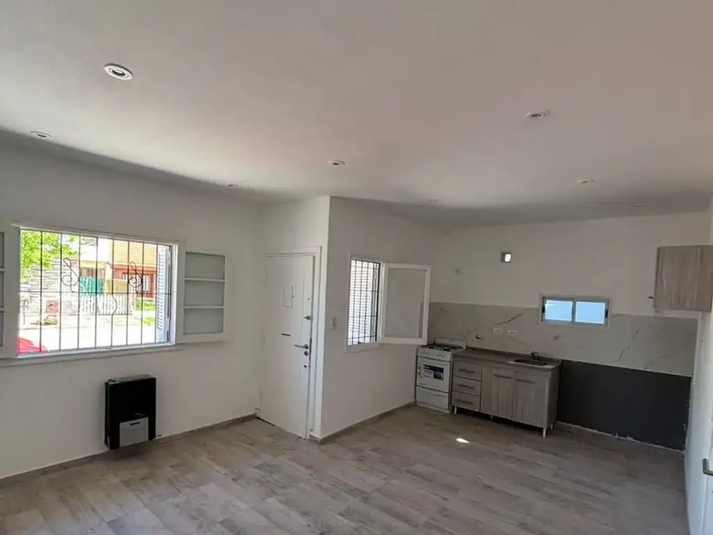 Cocina comedor integrada, con cocina a gas y termotanque electrico.