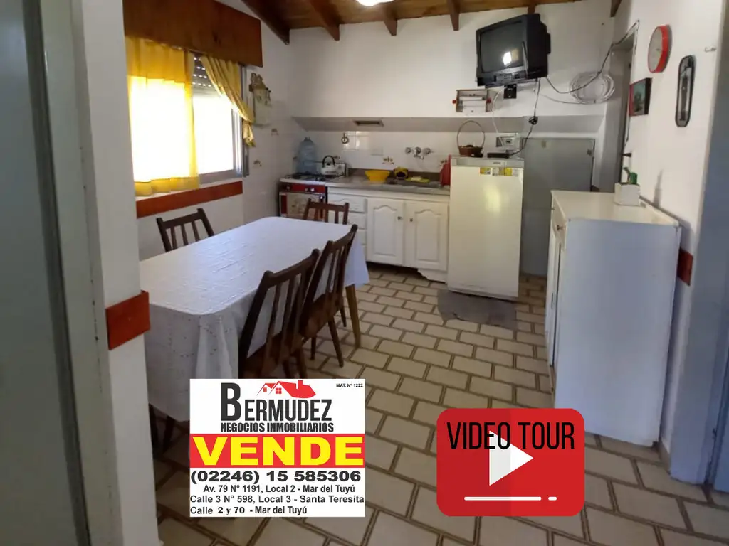 Entrada para auto individual y rejas al frente. Pasillo independiente con salida al patio con parrilla tipo fogon con mesa de mosaicos. En primer piso, lavadero al frente. Comedor con cocina integrada, dormitorio con cama matrimonial y ventana, segundo dormitorio con camas cucheta y ventiluz. Baño. Altillo (para guardado de cosas).