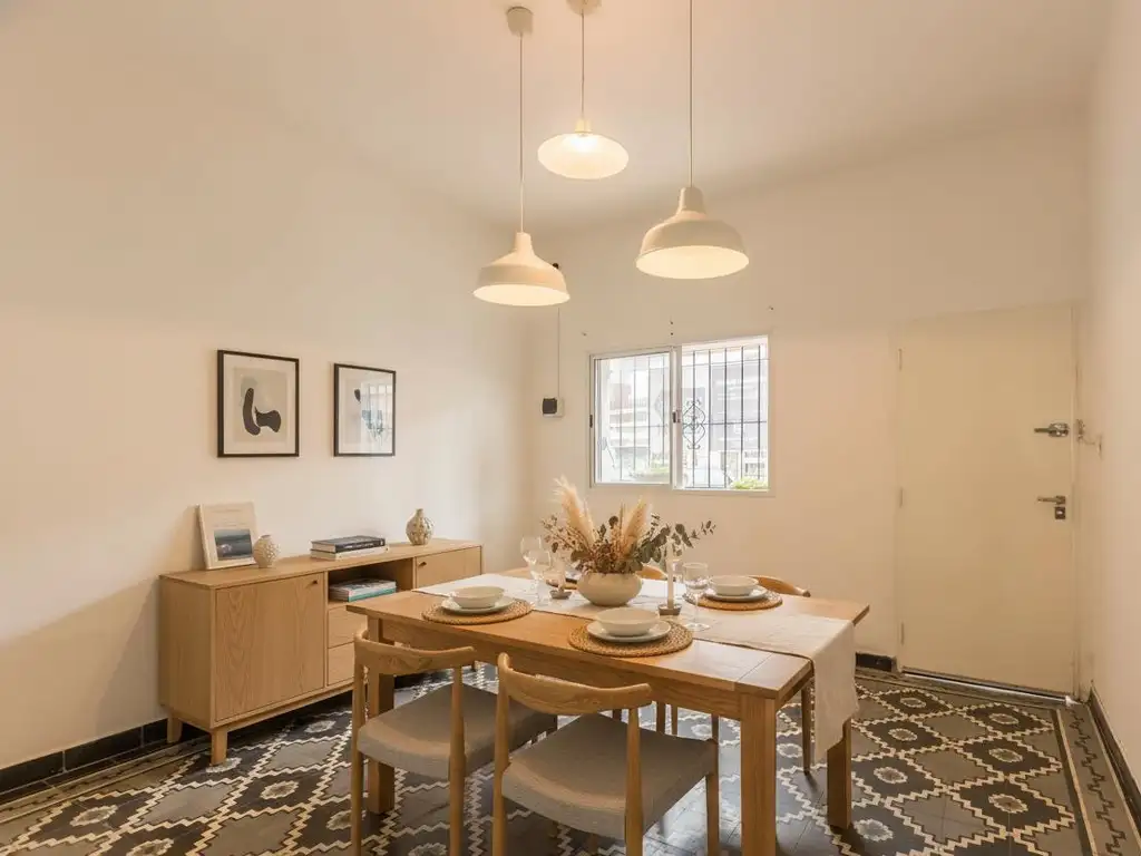 - Dos dormitorios bien definidos: uno al frente y otro al contrafrente.