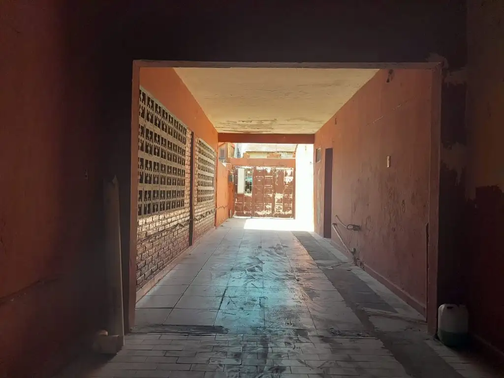 Entrada por portón lateral, con espacio común compuesto por patio descubierto para entrada de auto + amplio pasillo cubierto de 11 metros.