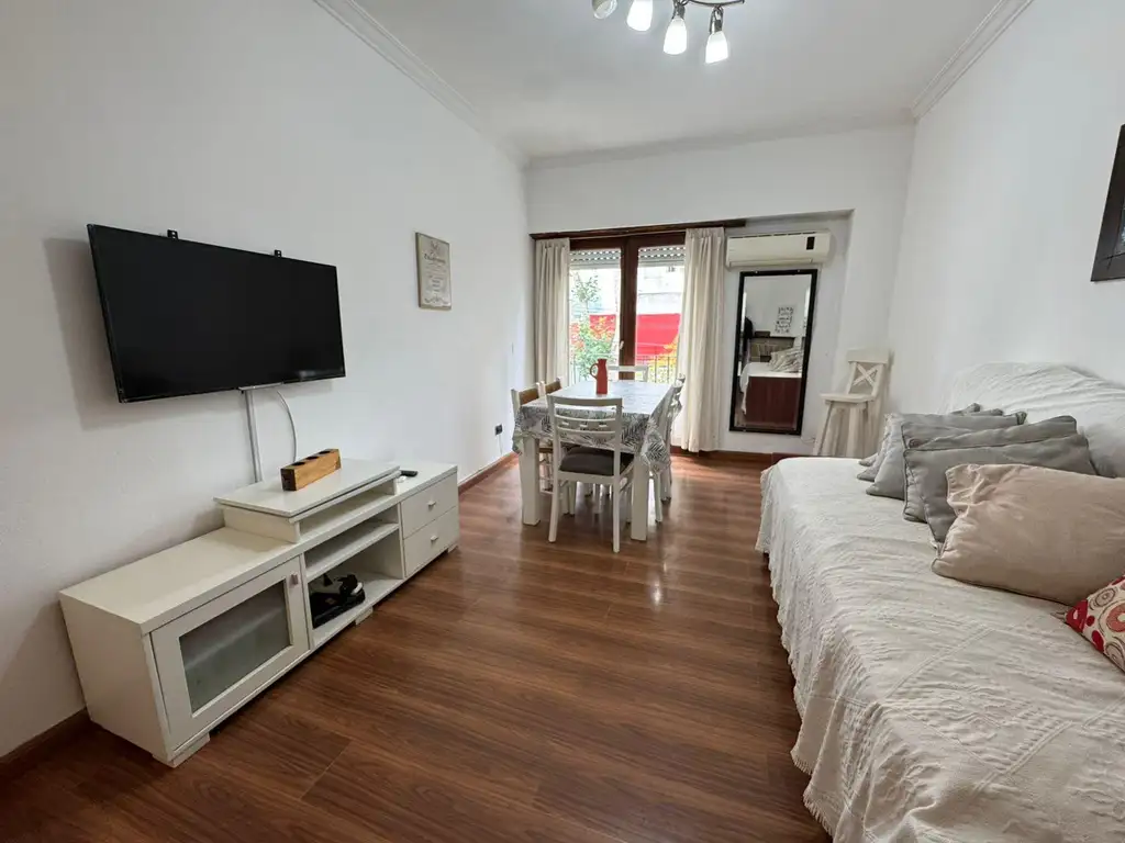 unidad se desarrolla en una excelente distribución, con dos amplios dormitorios, distinguido living comedor con