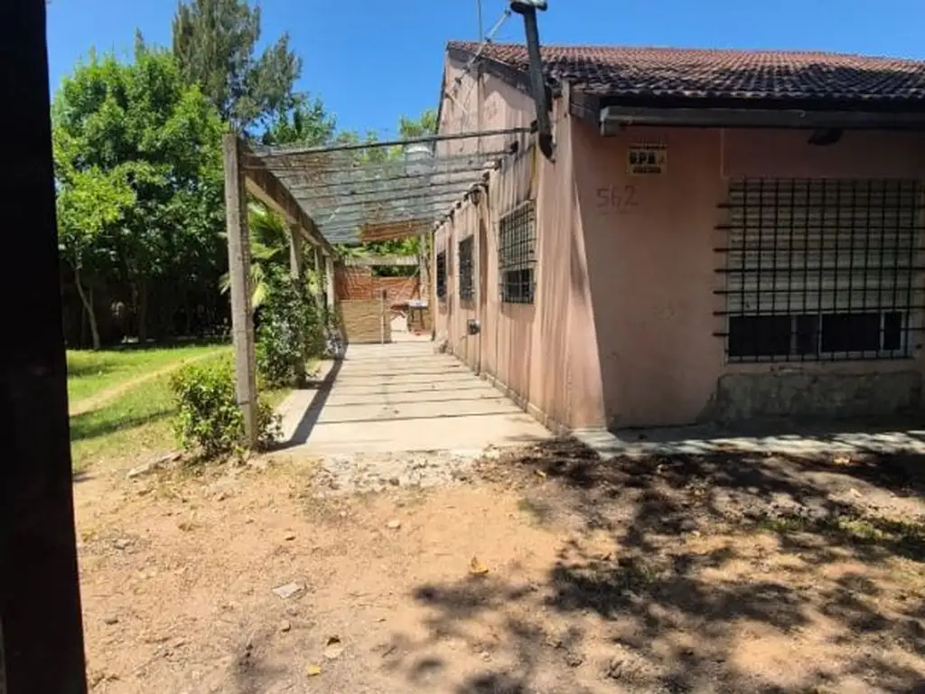 Corrientes 562 entre Formosa y Jujuy , barrio de quintas muy forestado; casa tipo chalet 3 amplios ambientes con gran comedor cocina 12x6 techos altos tirantería y machimbre a la vista 4 mt altura, pisos porcelanato nuevos, dos dormitorios con placard 4x4 pisos cerámicos con baño completo lavatorio y artefactos color al medio moderno y espacio alacena y ante baño con vanotory. baulera en altos. Abertutas completas con rejas y persianas, salamandra termo eléctrico nuevo. Patio con baño de servicio galería sin techar (solo sombra) piscina con playa húmeda en "L" con venecita equipo filtrado. Gran parfque forestado . Muy lindo barrio y estilo interior con mutos internos ladrillos vista. a 200 mt RP 210 km 56200 50 mt Plaza. calles comsolidadas no inundable