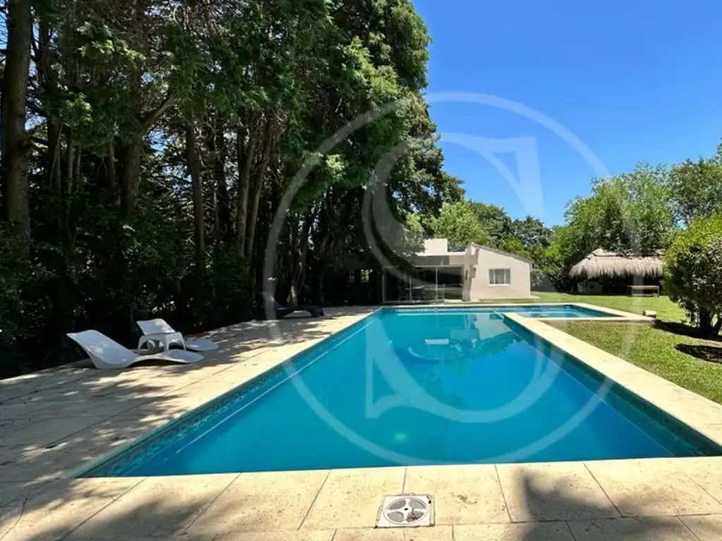 Parque con quincho semi cubierto de 8m x 4.5m. Fogón, sector juego para niños y pileta de 12m x 4m más sector espejo de agua.