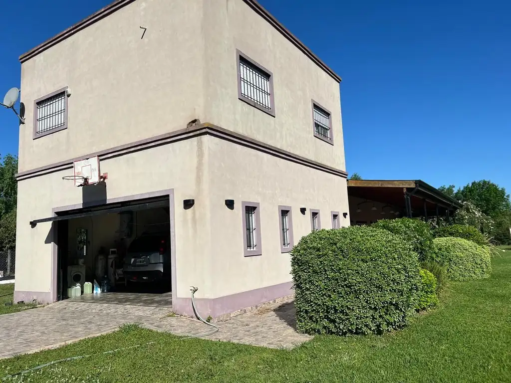 Barrio Dardo Rocha (muy jerarquizado ) entrada pirtón km 56 RP 210 , a 200 mt de ruta muy arbolado con plaza y construcciones muy residenciales.Son 7 lotes de 10 x 26 mt c/u.1820 mt2 salida a 3 calles enrada autos por calle La Pampa y Tucumán;todos parquizados y cercados. Porticos de categoría portón automatizado . Modernaconstruccion aprox. de 8 años construccion carpinteria a medida, gran estar comedor 5 x 17 mt indiviso espacio living y comedor con hogar a leños y salamandra "tromen" (alta eficiencia), barra con cocina y mesada en "U", hueco para heladeras, parrilla interna con gran tijare Spiro . baño en PB con conexión a galería. 2 puertas ventana a galería ( 7x23 mt con juegos de jardin: mesas sillas, parrilla y horno exterior, lavadero. Muy buen diseño y amoblamientos. Garage 10x6 con portón levadizo para 3 vehículos. Planta superior: 3 habitaciones con baño completos aire acondicionado frío calor. Piscina 5 x 10 mt con oplaya húmeda, 100.000 lts con bomba y flltros ed 1HP tapas y cuerpo de fundición. todo Hº Aº con baldosa anti térmica, Parquizacion con riego por aspersión. Inst. sanitarias y electricas.