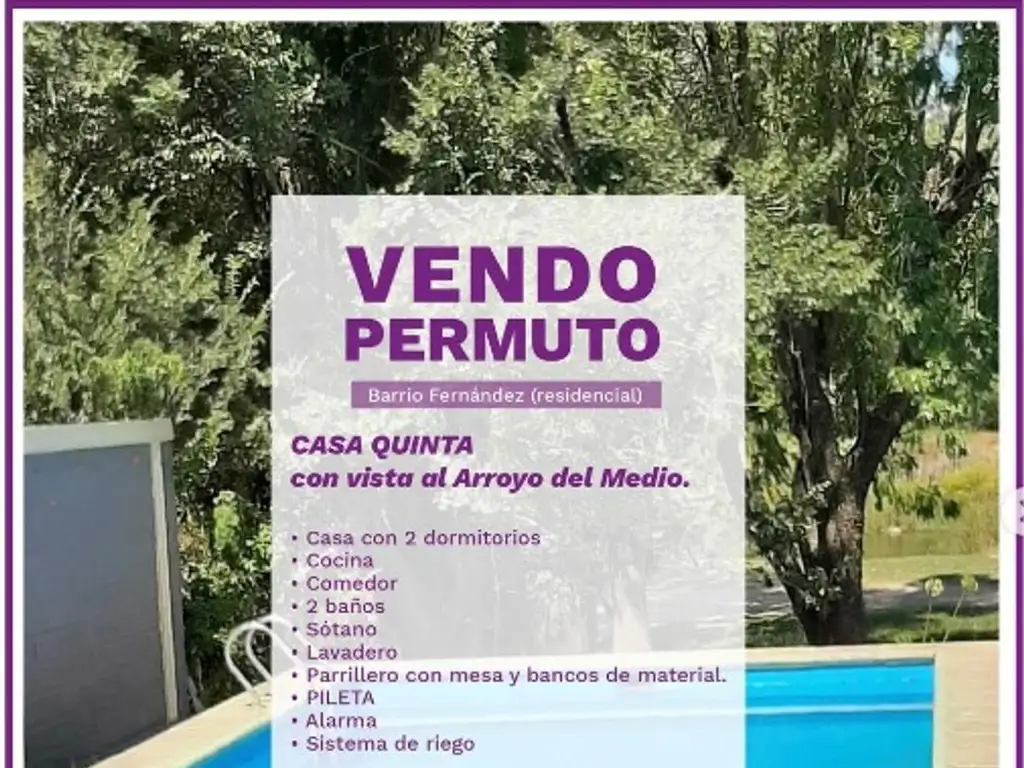 Vendo o permuto casa Quinta con vista al Arroyo del medio