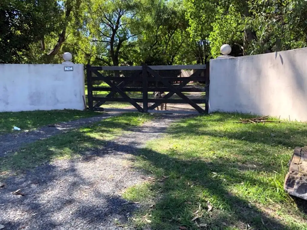 Compuesta de: casa: living comedor con hogar, kitchenette, 2 dormitorios y baño . Quincho: amplio salón con hermosa cocina , baño, despensa, y galería. Gran pileta de natación de 10 x 5 . Sala de máquinas. 140 m2 cubiertos Sobre lote de 4300 m2 . Espectacular arboleda