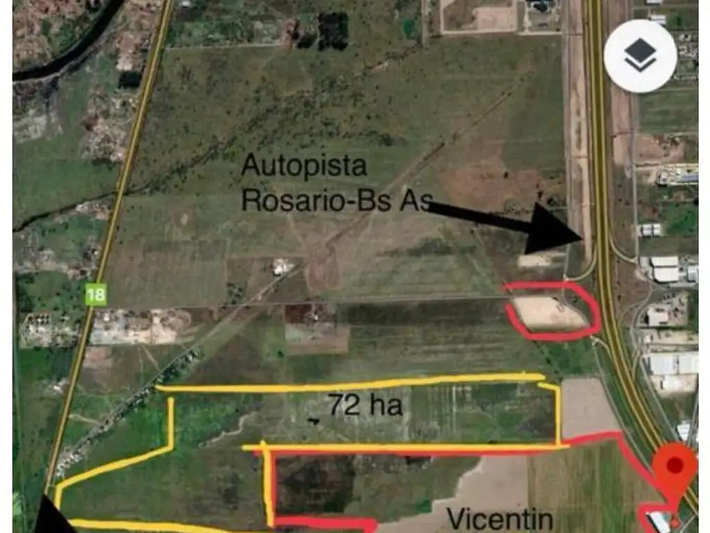 Se venden 72.000 metros cuadrados en la localidad de Alvear, ideal para realizar un desarrollo industrial. El terreno está ubicado en una zona estratégica, con cercanía inmediata a la Autopista Rosario - Buenos Aires y salida directa a la Ruta 18, lo que facilita el acceso y transporte. Oportunidad única para proyectos industriales en una ubicación privilegiada.