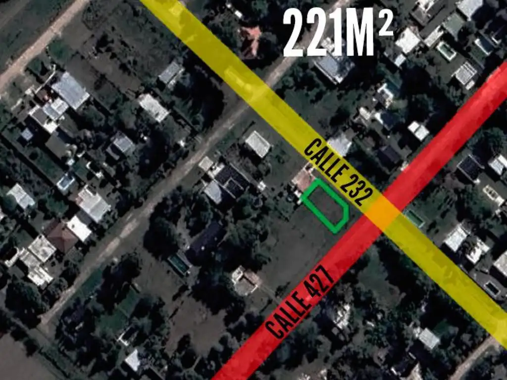 _ Terreno en venta ubicado en calle 427 y 232 (El Peligro, Arturo Seguí, La Plata, Buenos Aires). Con disposición frente y orientación al este.