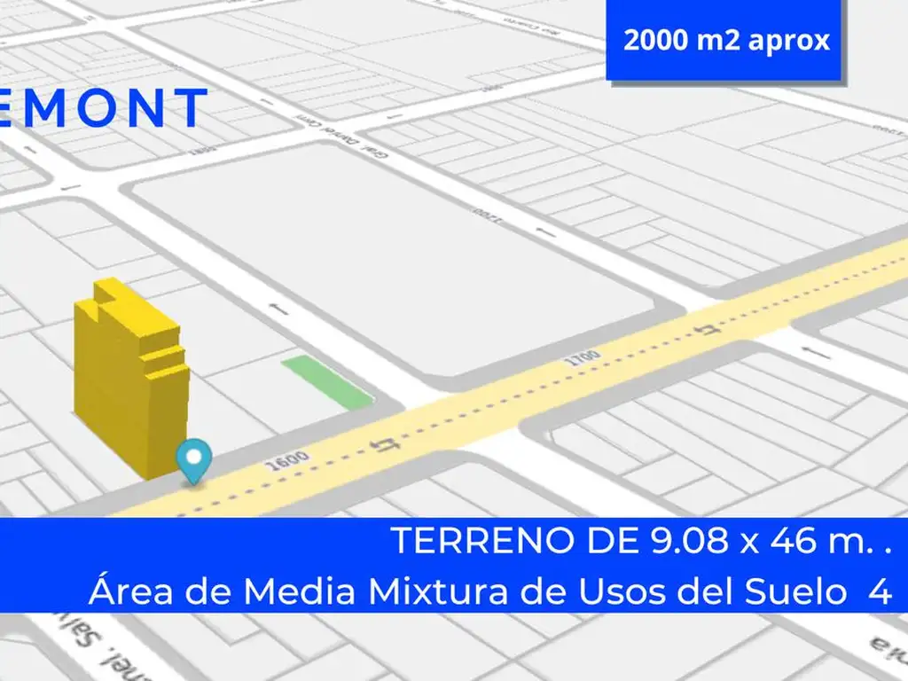 Mixtura 4 para este terreno de 413 m2 (9,08 m de frente x 46 m de fondo) se presenta como una excelente oportunidad para desarrollos comerciales, logísticos o residenciales en Barracas.
