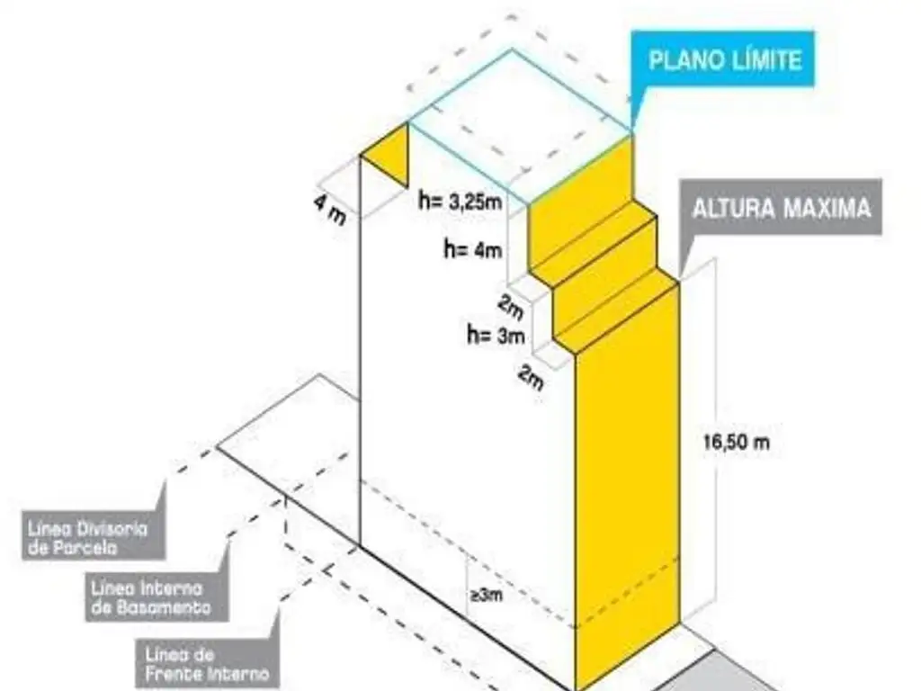 Altura: 16,50 metros + dos retiros.