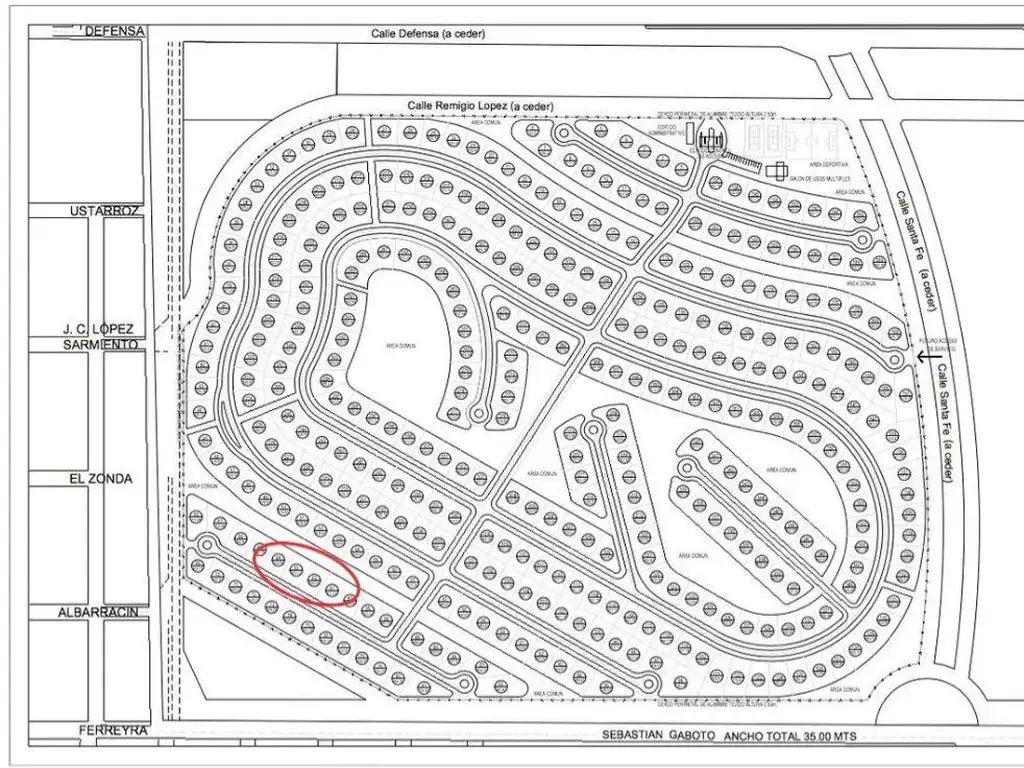 El barrio cuenta con canchas de tenis, sum con vestuarios, fogonero.