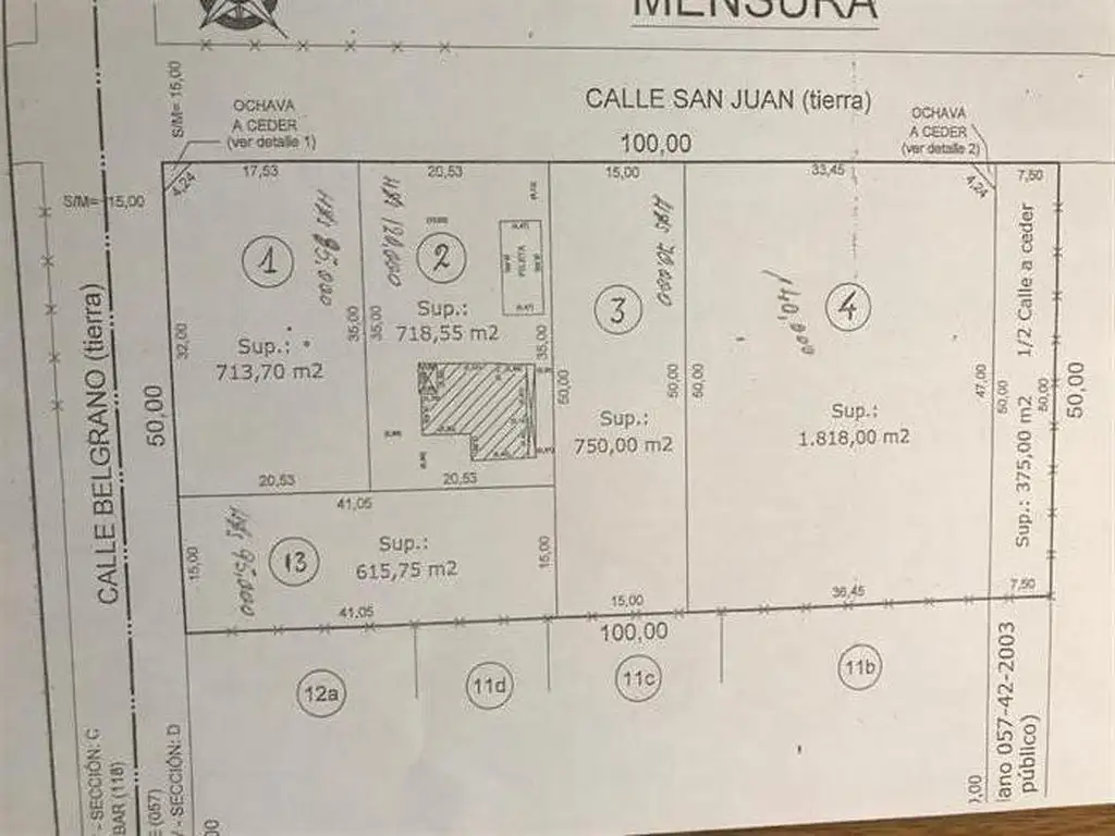 Es un lote de 615,75 M2. (15 metros de frente y 41 metros de fondo).