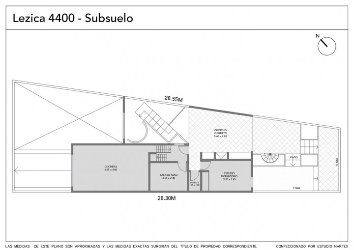 Se ingresa a la planta baja de la casa. Los dormitorios se ubican en el 1er piso y el quincho y la cochera en el subsuelo.