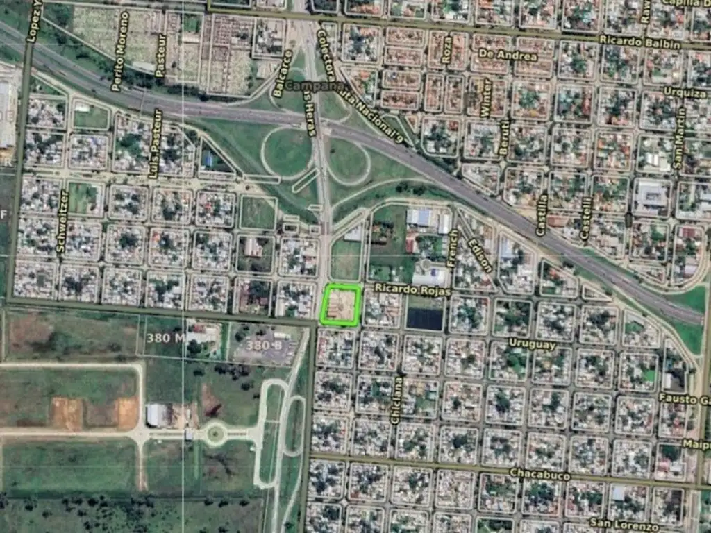 Se trata de un macrote esquina con una superficie total de 6.686 m², emplazado sobre las calles Ricardo Rojas y Las Heras, a tan solo 1 minuto de la Panamericana (Ruta 9) y con fácil acceso al centro de Campana, zonas industriales y residenciales.