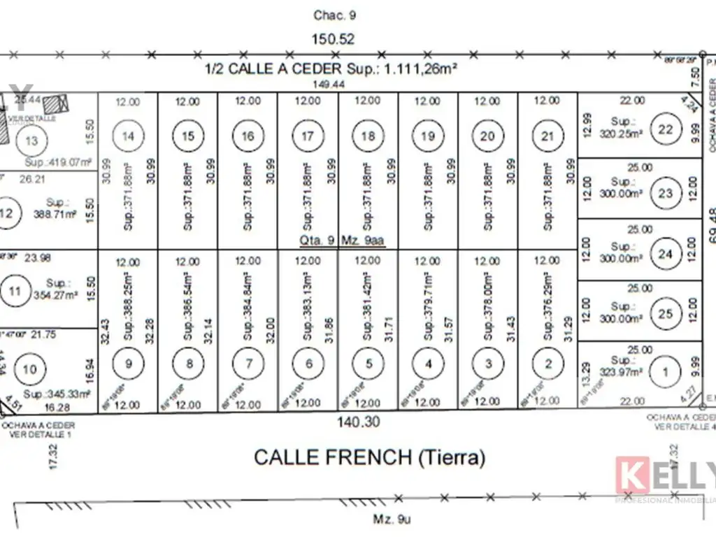 • Long. Frente: 12 m