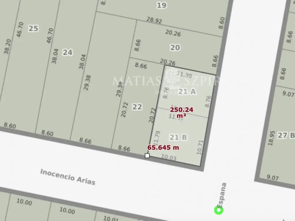 Lote comercial sobre Av. Inocencio Arias 2800, esquina España.
