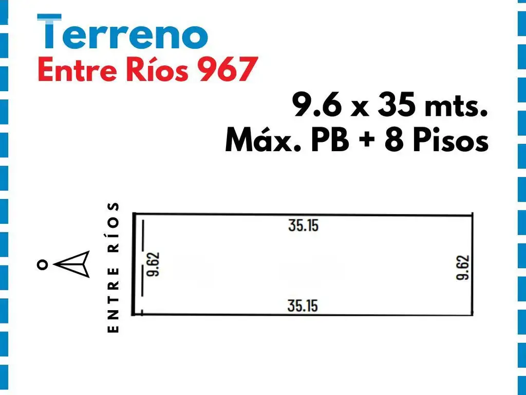 La propiedad cuenta con un lote de proporciones regulares: 9.62 metros de frente por 35.15 metros de fondo, ofreciendo un amplio espacio para diseñar y construir. La altura máxima permitida es de 25mts (PB + 8).