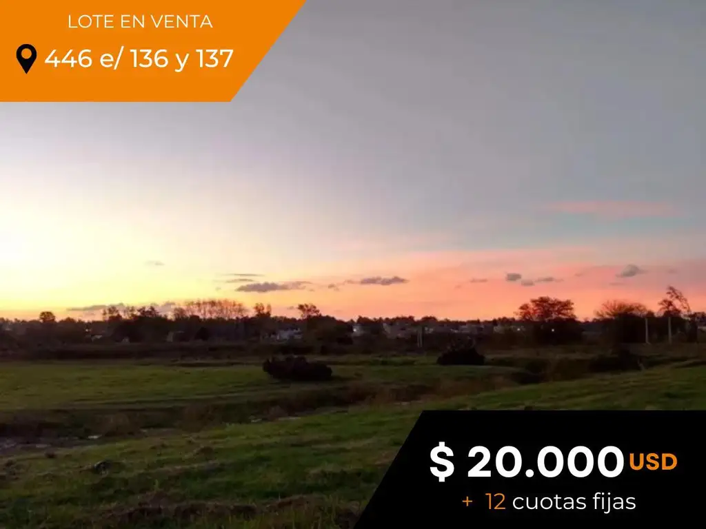 _ Terreno a la venta ubicado en calle 446 y 137 (City Bell, La Plata, Buenos Aires) Con disposición frente y orientación noreste. Sobre calle de tierra mejorada para el ingreso y servicios de electricidad, agua corriente y gas natural.
