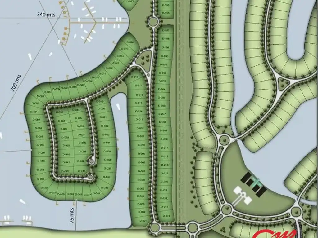 El Naudir cuenta con 1025 lotes distribuidos sobre 180 hectáreas de estratégica ubicación dentro del Nuevo Cazador. Del total de sus lotes - de aproximadamente 850 mts2 cada uno -, un 60% de los lotes posee acceso directo al agua (lagunas internas y amarras propias) y el 40% restante son internos.