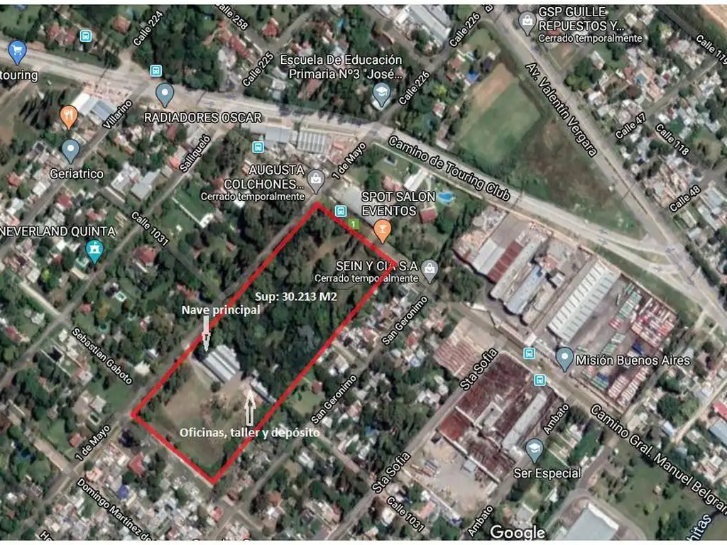 Con 96 metros de frente y una superficie de más de 3 hectáreas (30.213,13 m2), el predio es ideal para los siguientes usos: