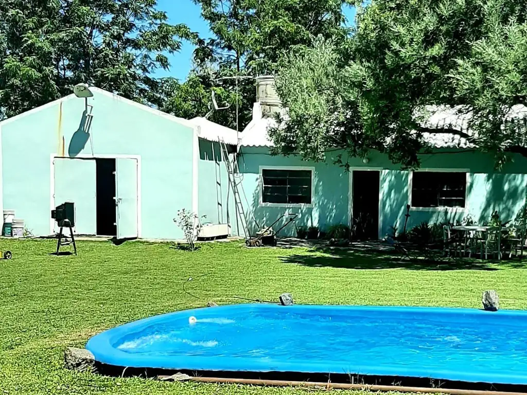 El terreno dispone de una casa de 120mts2cubiertos. Desarrollada en una sola planta, la misma posee 1 dormitorio, baño completo, cocina integrada del living comedor con salida al jardín y pileta de fibra de vidrio.