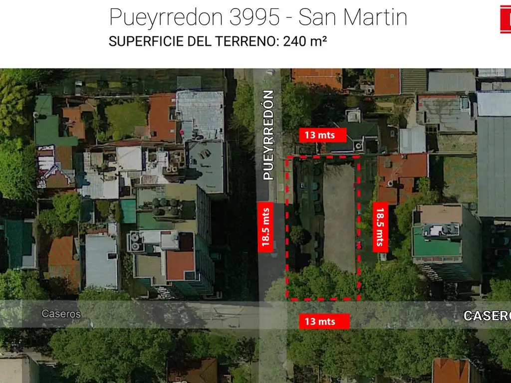 Medidas: Frente de 13 m - Fondo de 18.5 m